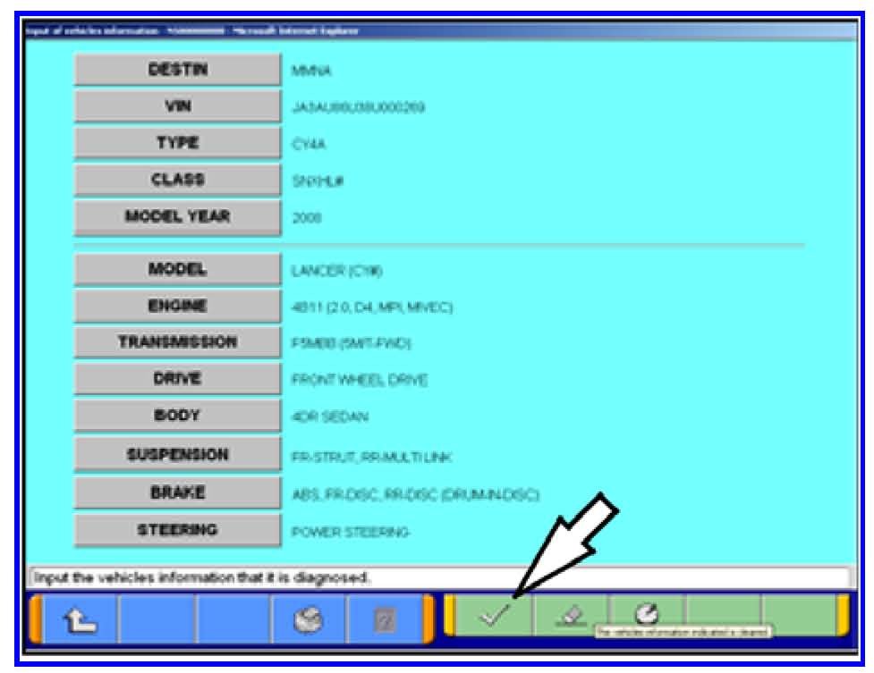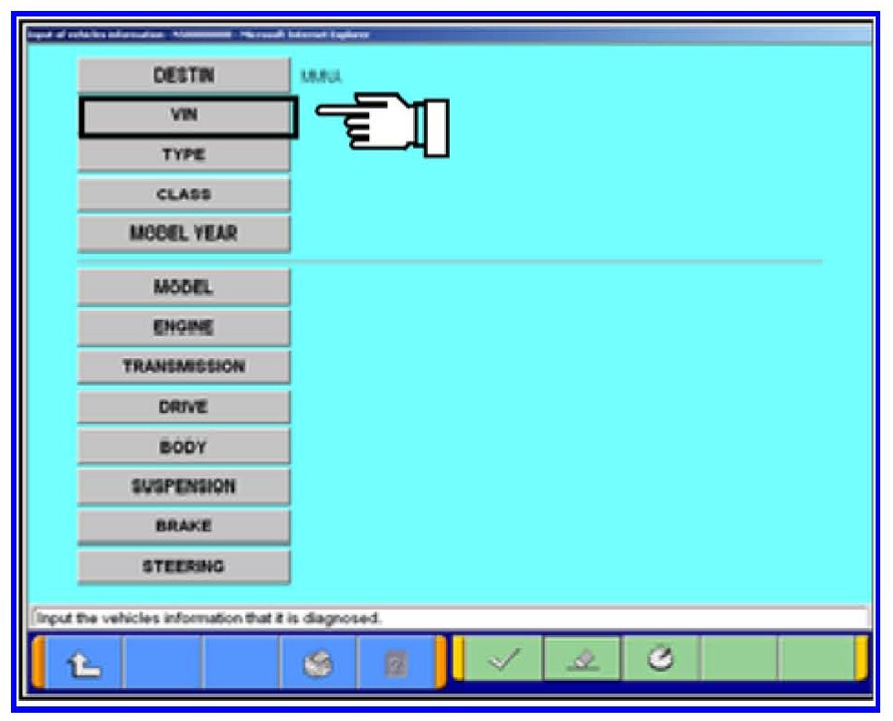 7. Click on the icon in the lower RH corner of the screen to have MUT-III automatically read the VIN. If a message appears advising the VIN cannot be input automatically enter the 17 digit VIN.
