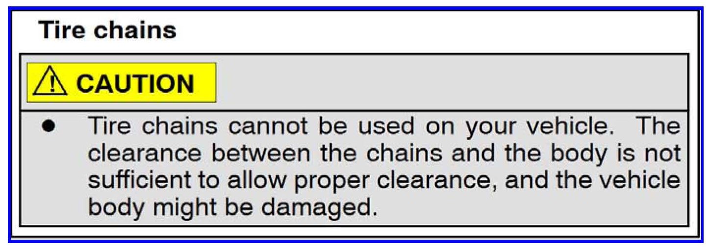 TIRE CHAIN USAGE FOR 2013 MODELS