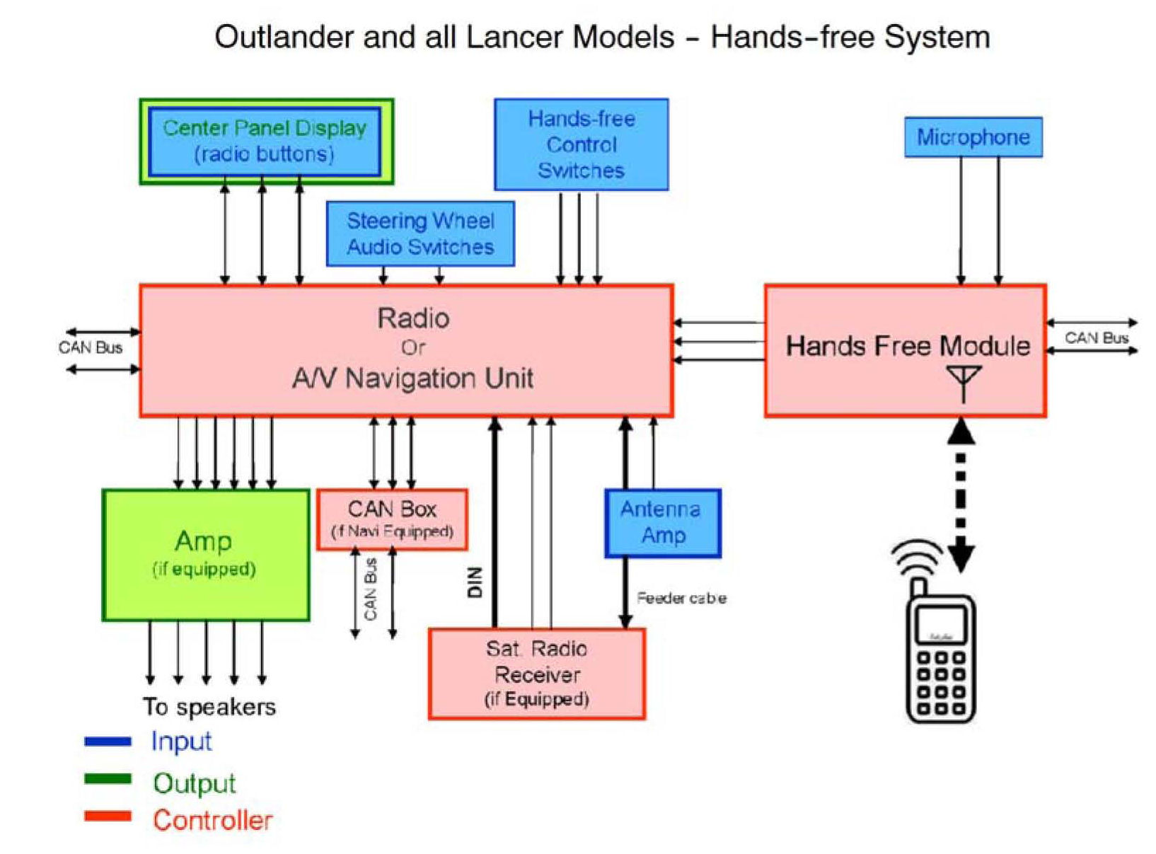 The diagrams on the following pages show the general layout of model specific hands-free systems.