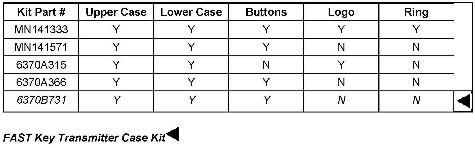 RKE INTEGRATED KEY CASE AND FAST KEY CASE SERVICE PARTS KIT AVAILABILITY