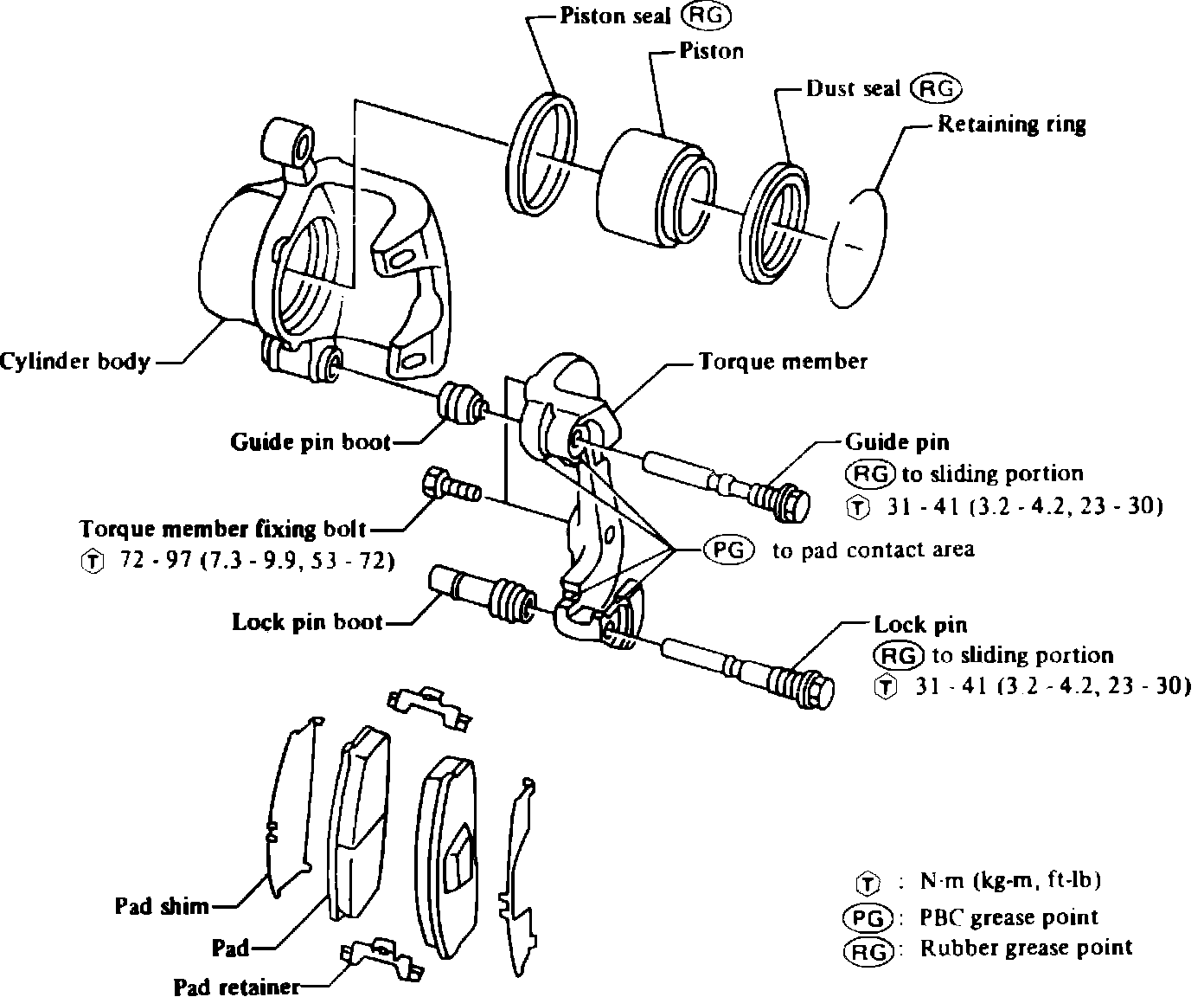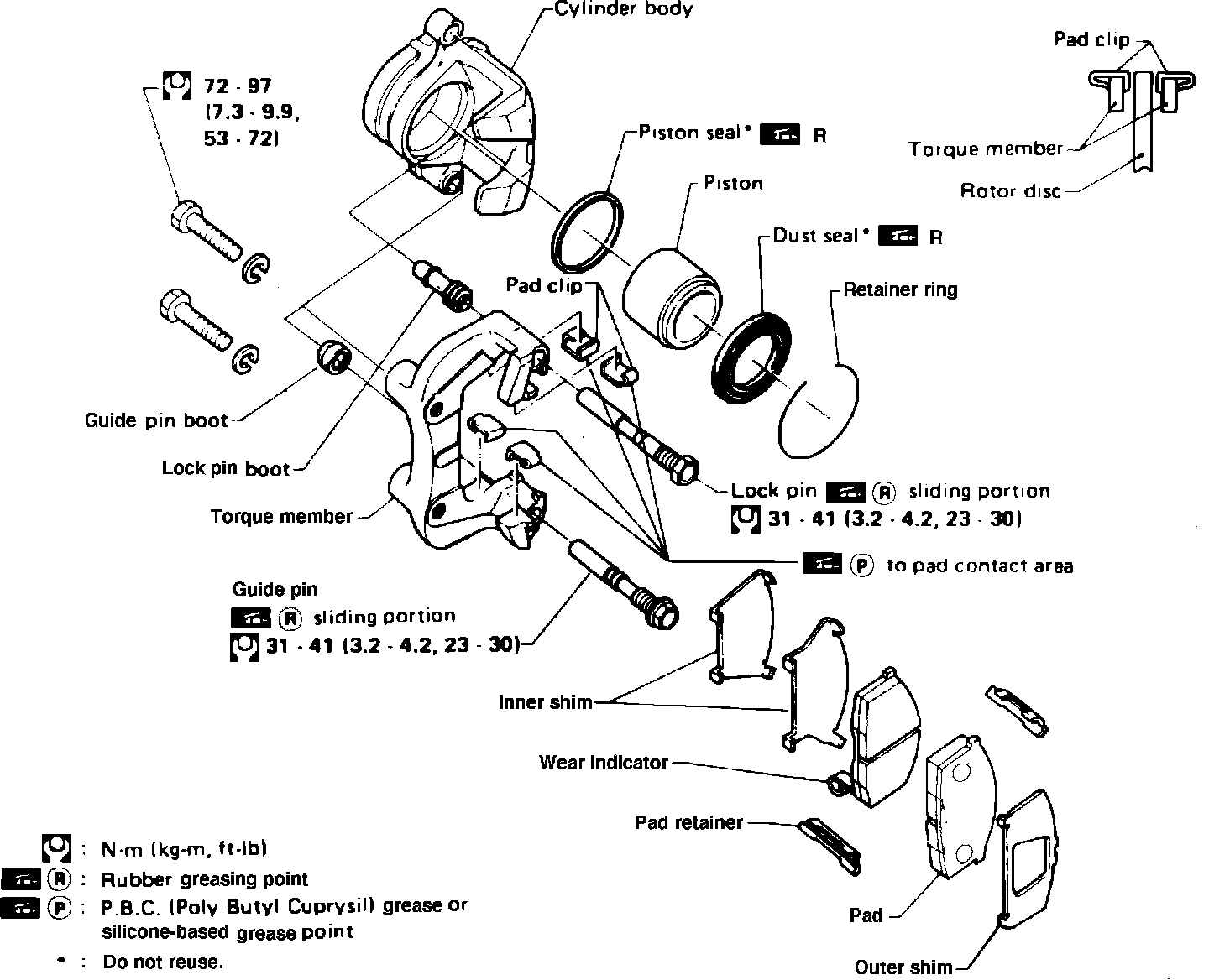 3. Remove piston seal, guide pin, lock pin, guide pin boot and lock pin boot.