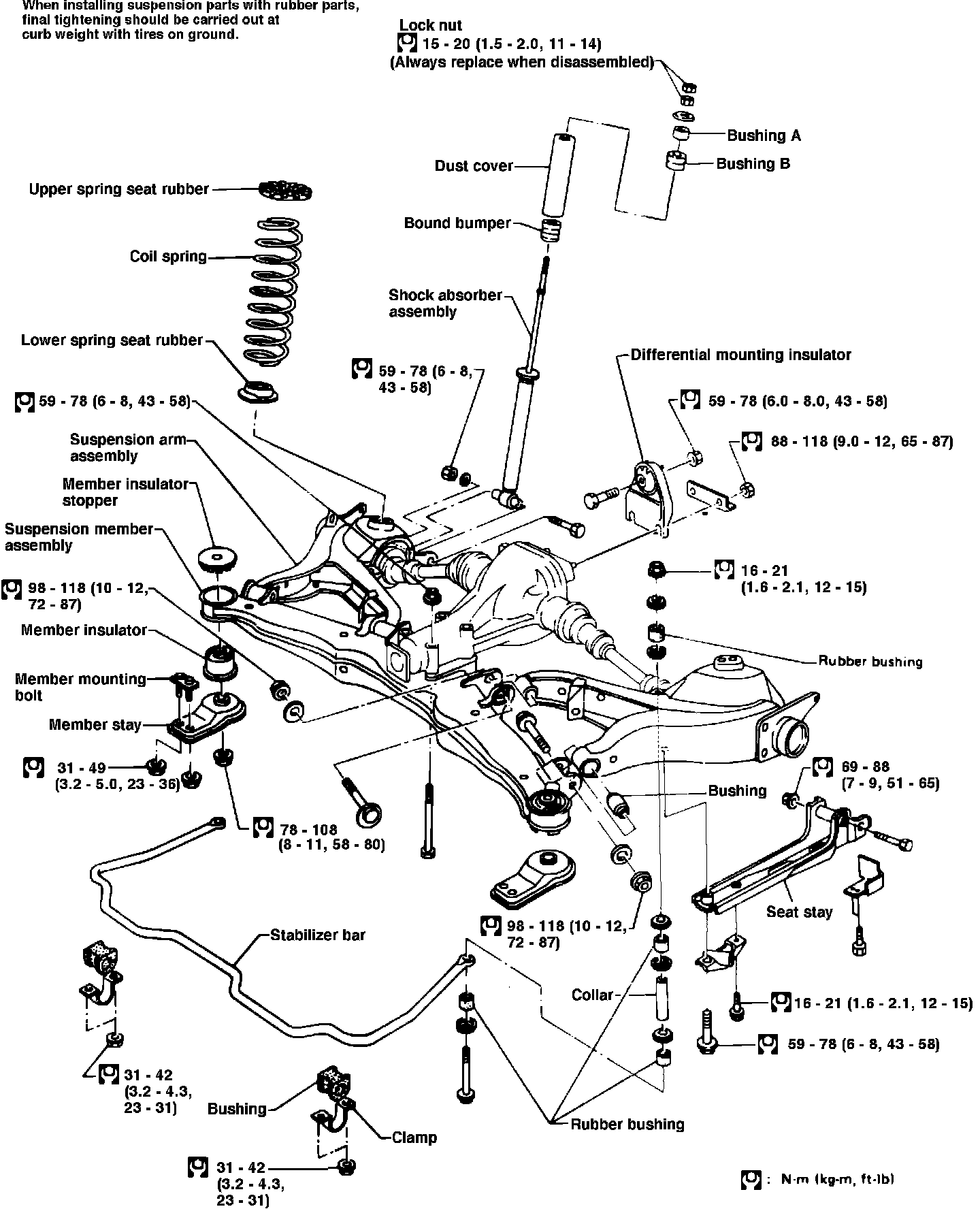 Fig. 15 Rear suspension. 200SX w/independent rear suspension: