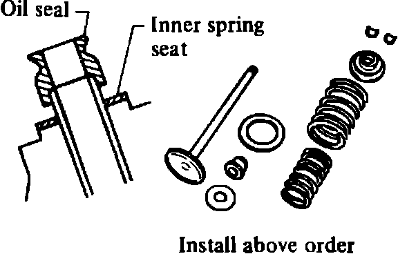 1. Install valves and valve components in order shown, Fig. 2. Apply clean engine oil to valve stem and lip of valve oil seal.