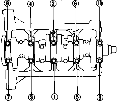 Fig. 5 Main bearing cap bolt tightening sequence. 1985-88: