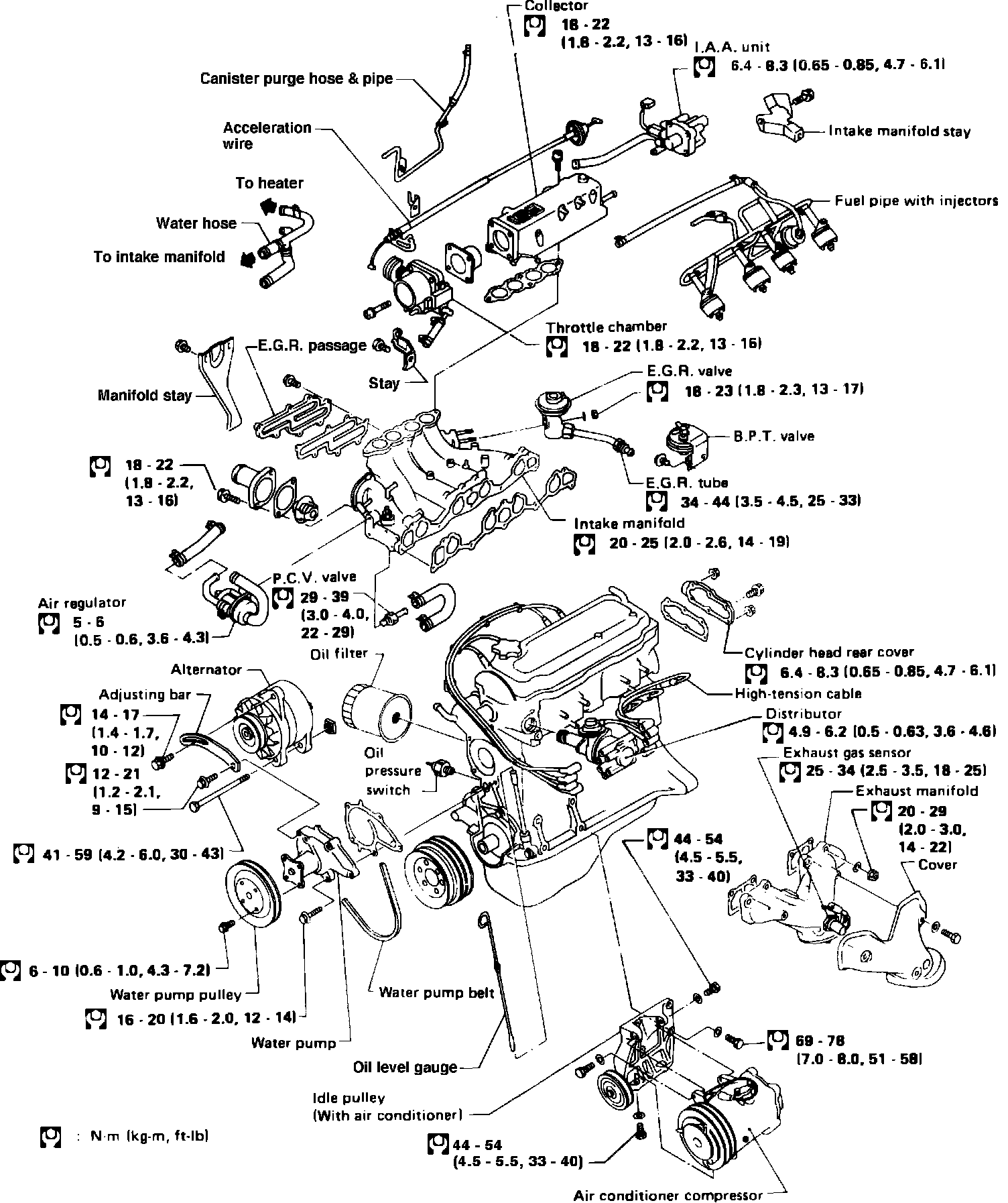 Fig. 17 Engine outer components. 200SX w/CA20E engine: