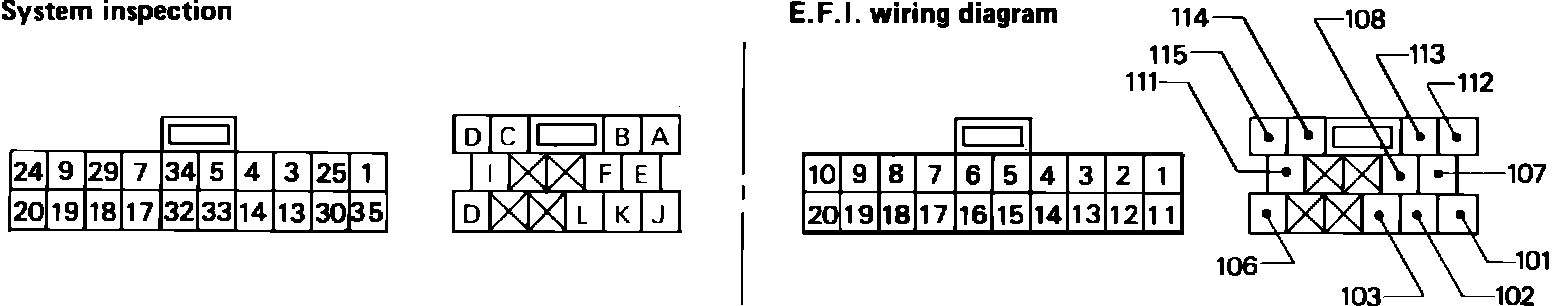 While performing electronic control system inspection by referring to EFI. wiring diagram, use the following cross reference for the connector location numbers. System inspection refers to the on vehicle connector. The EFI. wiring diagram refers to the number sequence of the diagram connector.