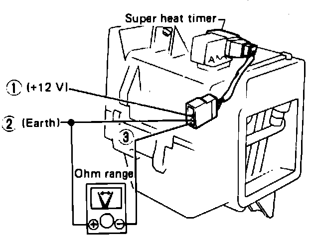 2. Ensure that there is infinite ohms between 2 and 3 when 12 volts is applied between 1 and 2 for less than 105 seconds and that resistance drops below 400 ohms when voltage is applied for more than 175 seconds.