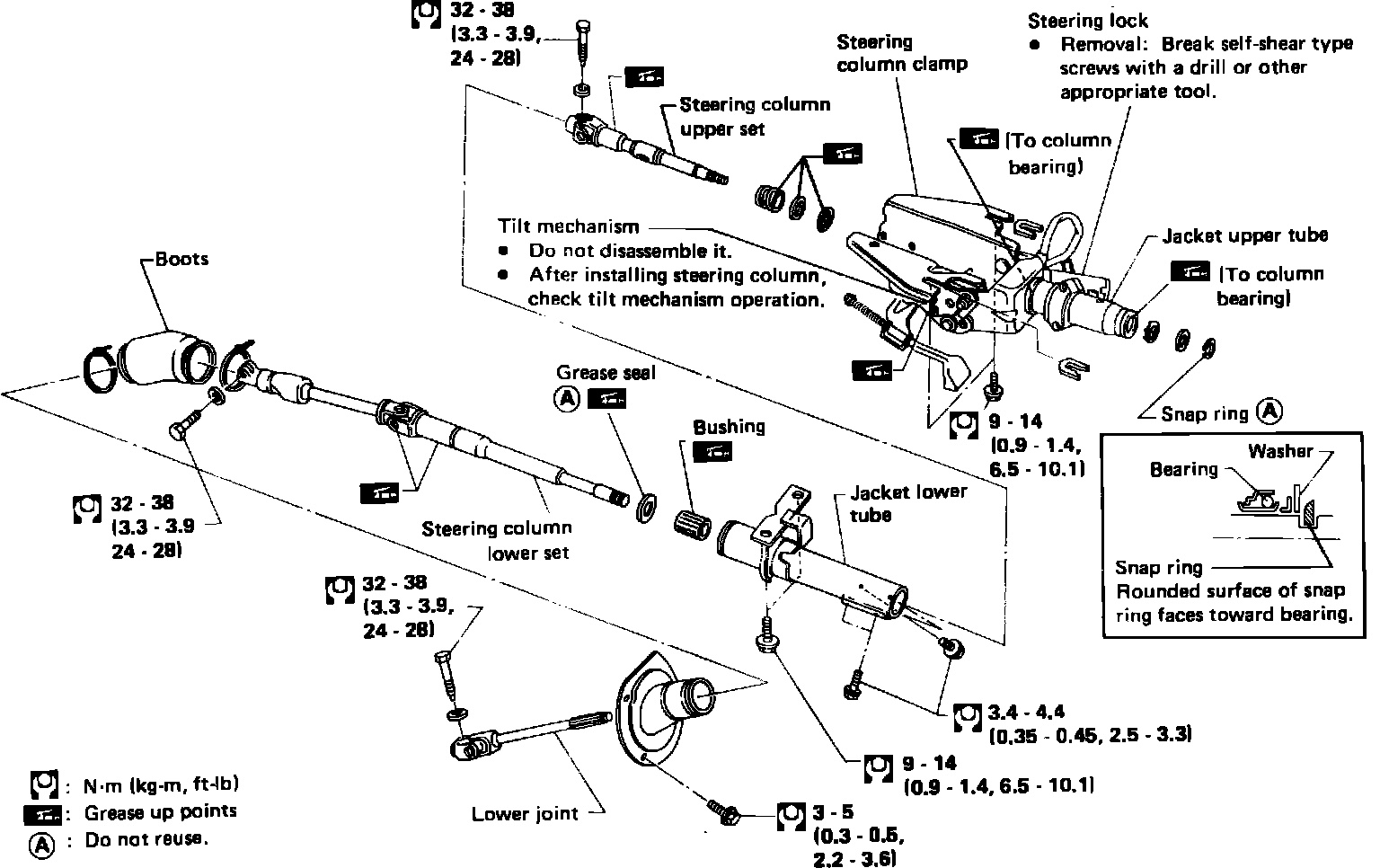 Fig. 2 Exploded view of steering column. 300ZX w/tilt column: