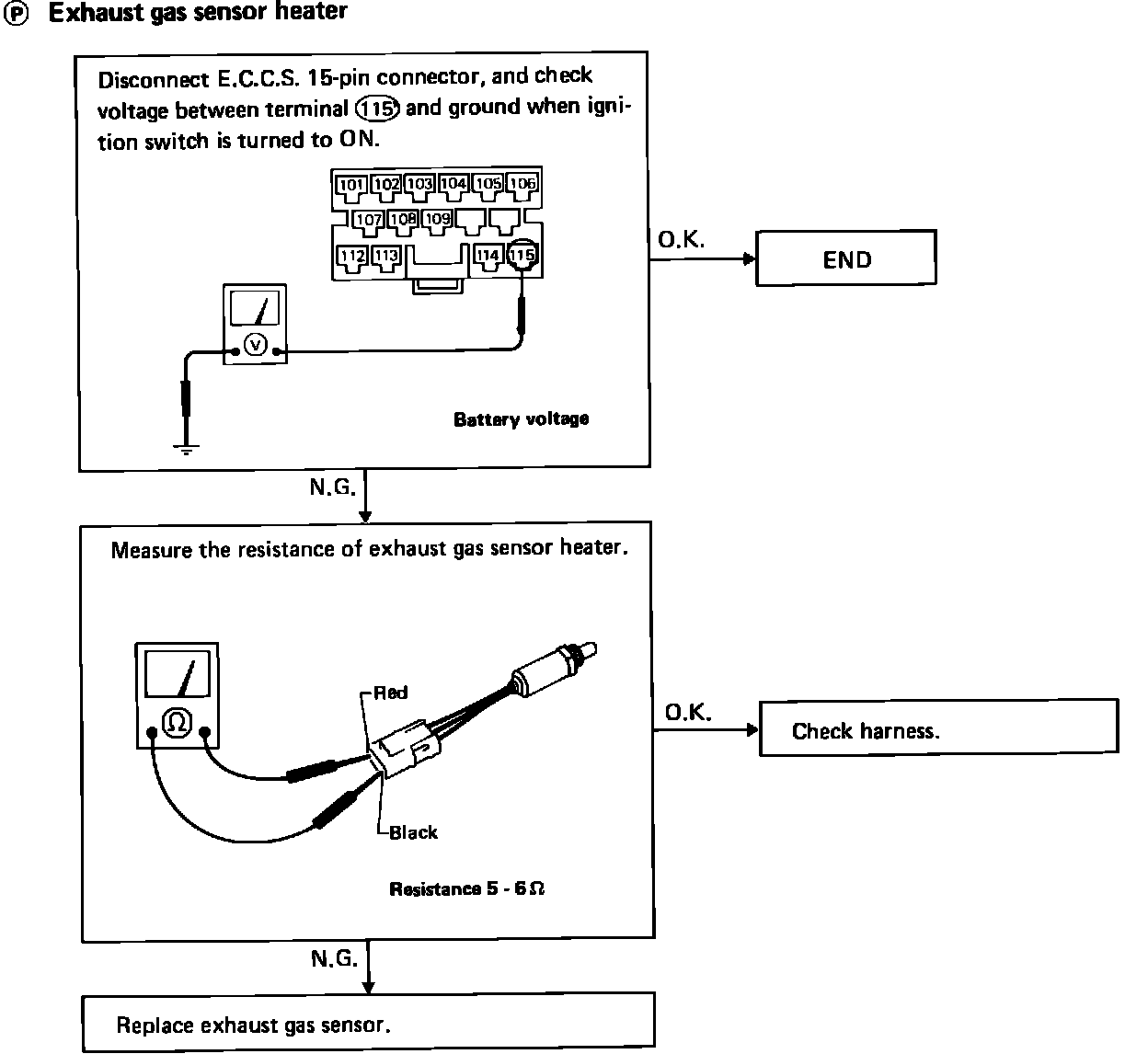 Fig. 98 Exhaust gas sensor heater diagnosis chart.: