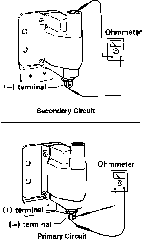 3. Connect ohmmeter as shown. Reading should be approximately: