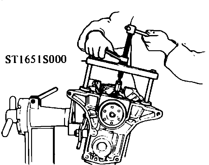 2. Remove locating plate, and the camshaft. Be careful not to damage camshaft bearings and cam lobes.