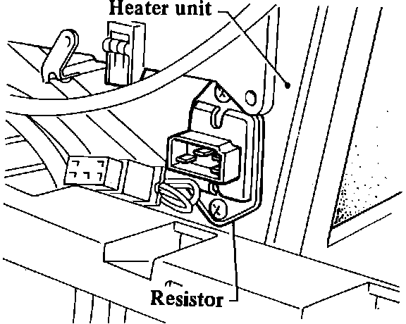 3. Disconnect wiring harness connector to resistor and remove resistor from heater case, Fig. 4.