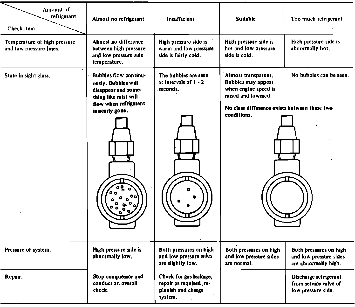 b. If receiver/drier screen is clogged, bubbles will appear even when system is fully charged.