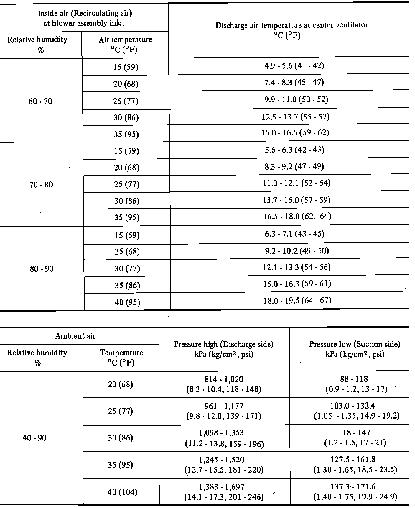 Fig. 36 A/C system performance specifications: