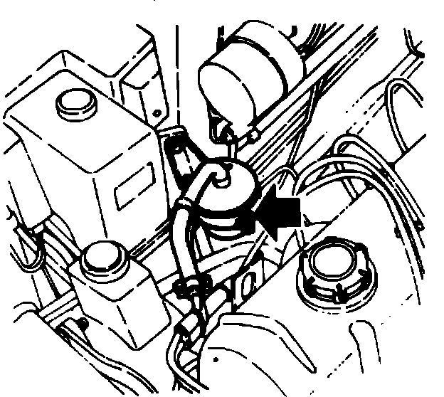 2. Place a rag under the filter to absorb spilled fuel. Loosen hose clamps at inlet and outlet side of filter and disconnect hoses.