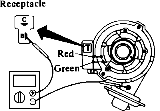 2. Turn ignition switch to on position. Meter should read battery voltage.