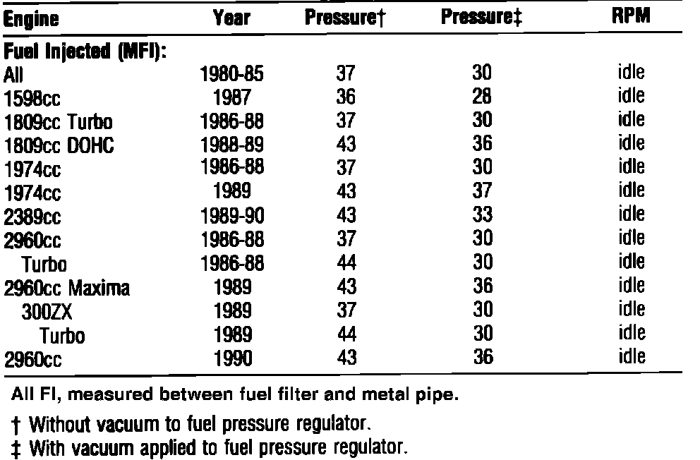 Fuel Pressure: Specifications