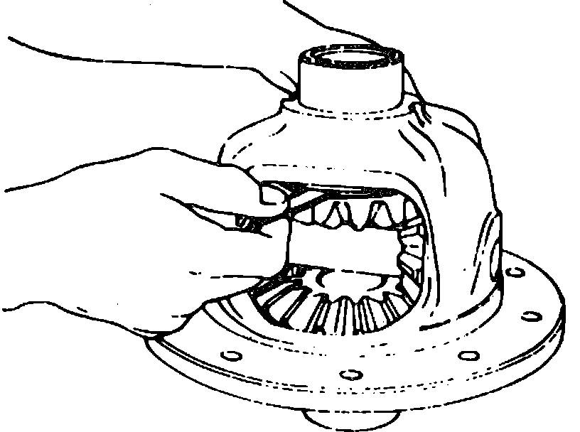1. Assemble pinion mates, side gears and thrust washers in differential case.