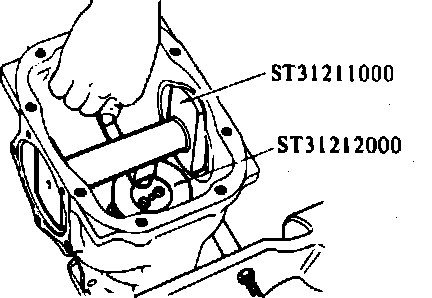 4. Install determined pinion height adjusting washer in drive pinion, and press rear bearing cone in, using Base ST30901000.
