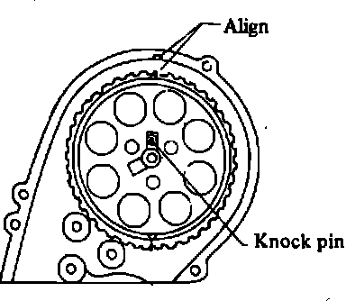 b. Rotate crankshaft until No. 1 cylinder is at TDC of compression stroke. This will align mark on crankshaft sprocket with mark on cylinder block cover.
