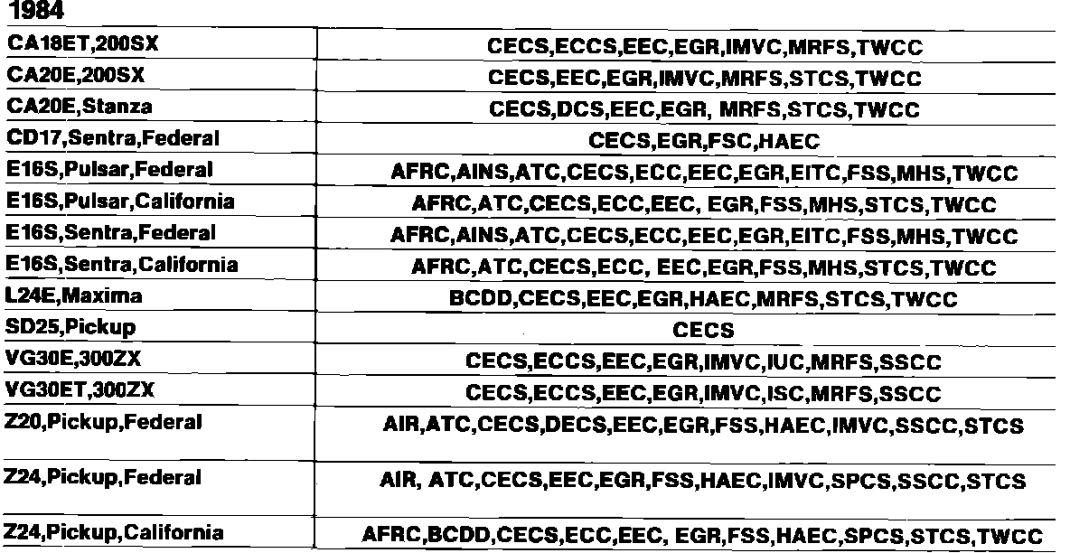 Emission System Application Chart