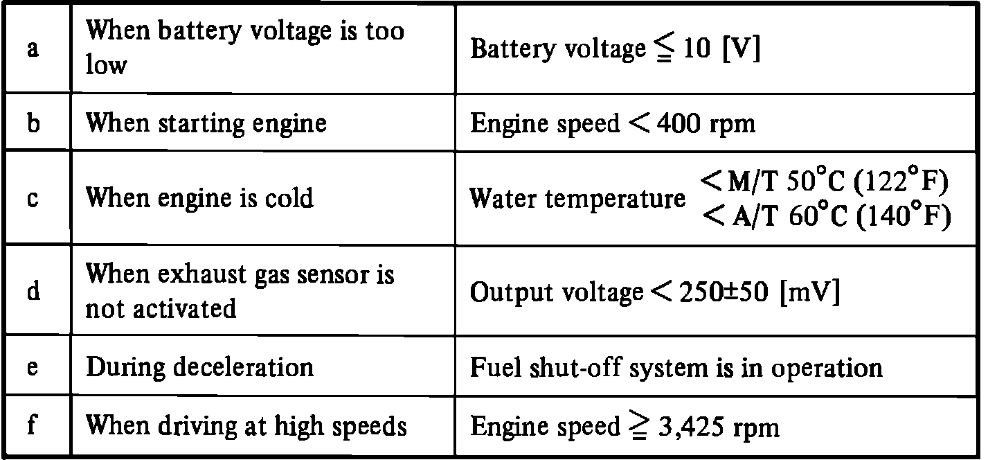 The air/fuel ratio control solenoid valve opens or closes every 65 milliseconds. During open-loop control, opening and closing time of the valve is maintained at the specified level according to condition of engine. During closed-loop control, opening and closing time is feedback controlled in the ECC control unit by the exhaust gas sensor signal.