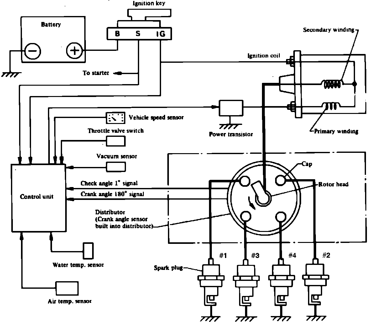 The central electronic control unit, Fig. 46, controls ignition timing in response to various engine operating conditions. The signal from the control unit is transmitted to the ignition coil power transistor which adjusts the ignition timing.