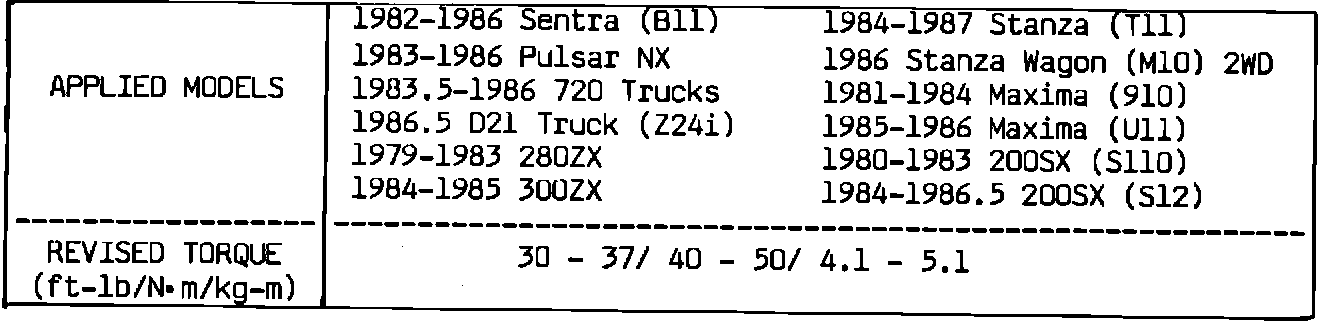 Make note of this new torque information in the Tightening Torque Table, EF&EC Section of these model Service Manuals.