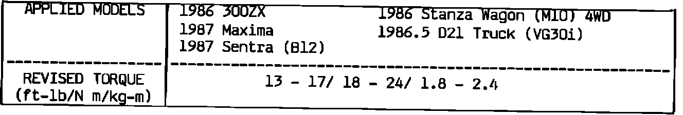 Make note of new torque information in the Tightening Torque Table, EF&EC Section of these model Service Manuals.