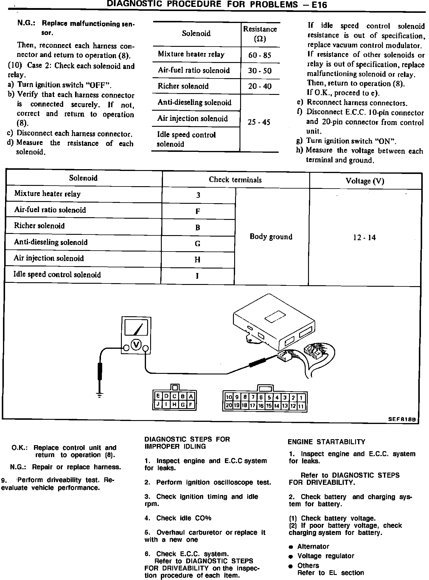 NO FAST IDLE, 1984 FEDERAL SENTRA AND PULSAR NX