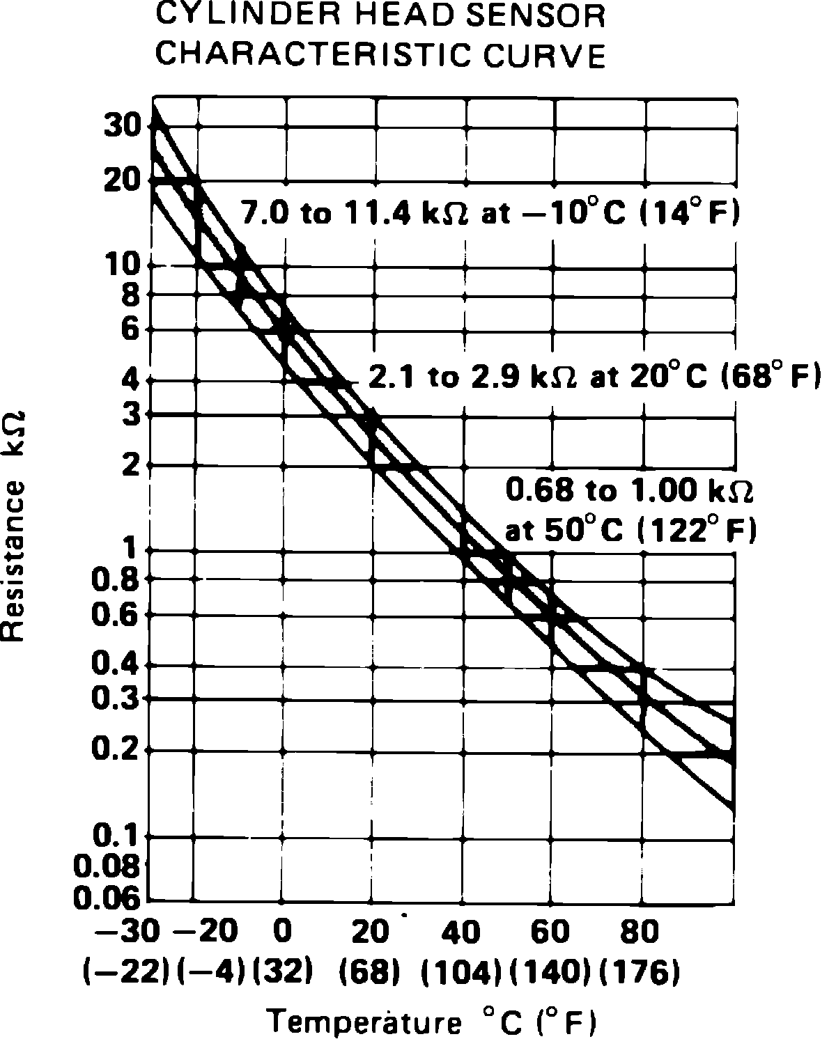 Fig. 27 Water temperature sensor resistance specifications: