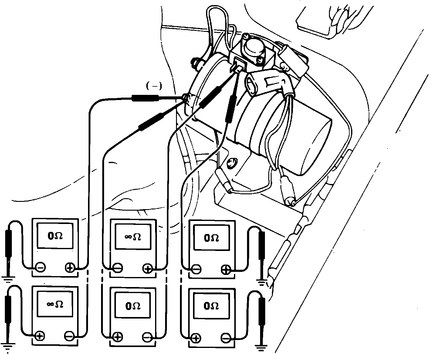 1. Check resistance values between control unit side of power transistor, body ground and ignition coil negative terminal, Fig. 48.