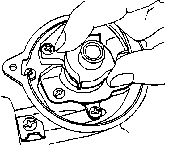 1. While preventing distributor shaft from turning, turn reluctor counterclockwise by hand and release it.