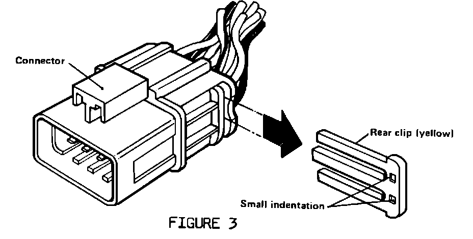 17. Install the terminals of the new richer solenoid into the connector modified in Step 9. Reinstall the rear clip of the connector.