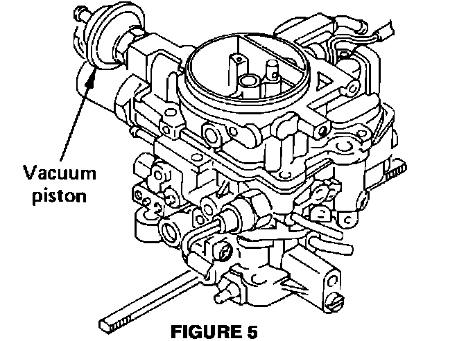 10. Disconnect the vacuum hose from the vacuum piston and remove the vacuum piston from the carburetor (Figure 5). Save the vacuum piston for reinstallation in Step 16.