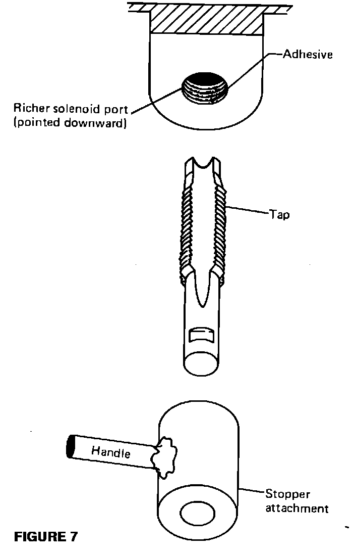 A. Screw the tap into the richer solenoid port about 2 or 3 thread lengths (Figure 7).