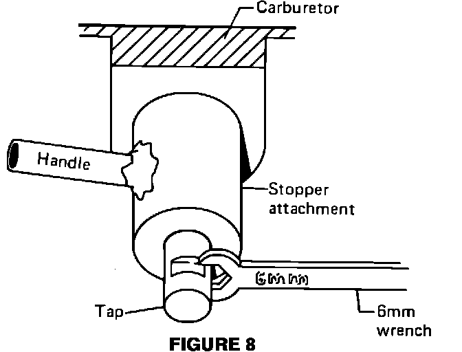 B. Place the stopper attachment over the tap and with a 6mm wrench, screw the tap in until the wrench contacts the stopper attachment (Figure 8).