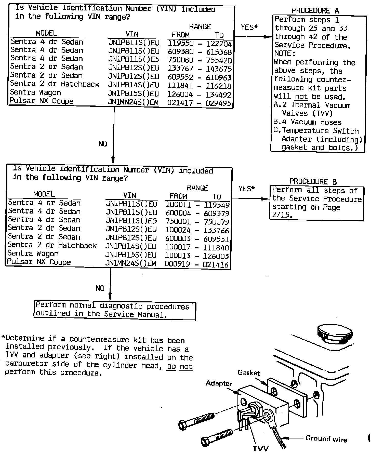 Use the diagnostic chart below to determine which steps of the Service Procedure to use for the affected vehicle.