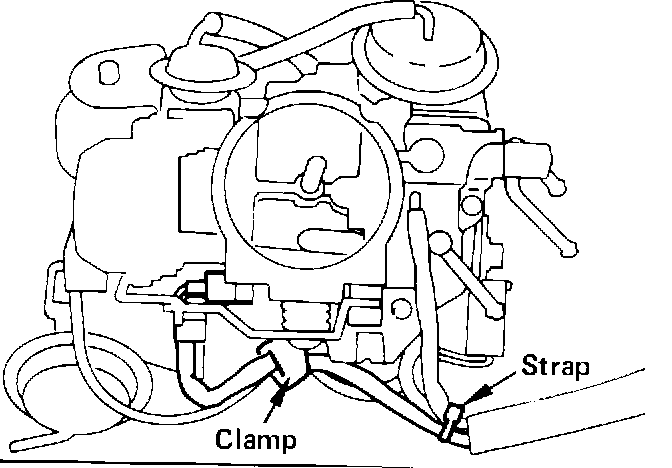 8. Cut the carburetor harness strap and unfasten the harness clamp.