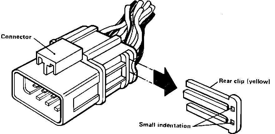 17. Install the terminals of the new richer solenoid into the connector modified in Step 9. Reinstall the rear clip of the connector.