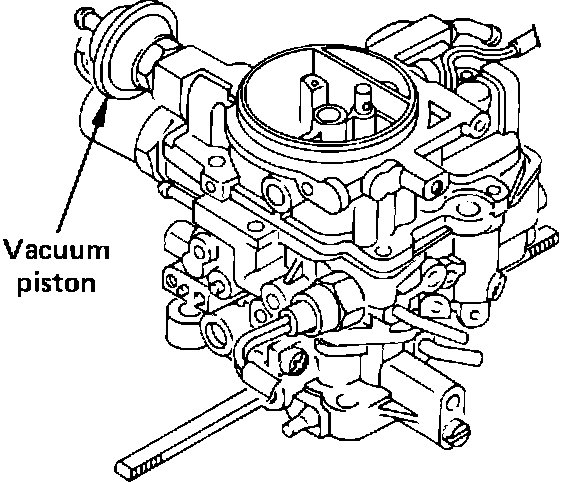 10. Disconnect the vacuum hose from the vacuum piston and remove the vacuum piston from the carburetor. Save the vacuum piston for reinstallation in Step 16.