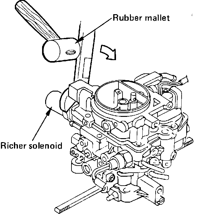 NOTE: Adhesive was applied to the richer solenoid thread when originally installed. Therefore, tap the wrench slightly when removing.