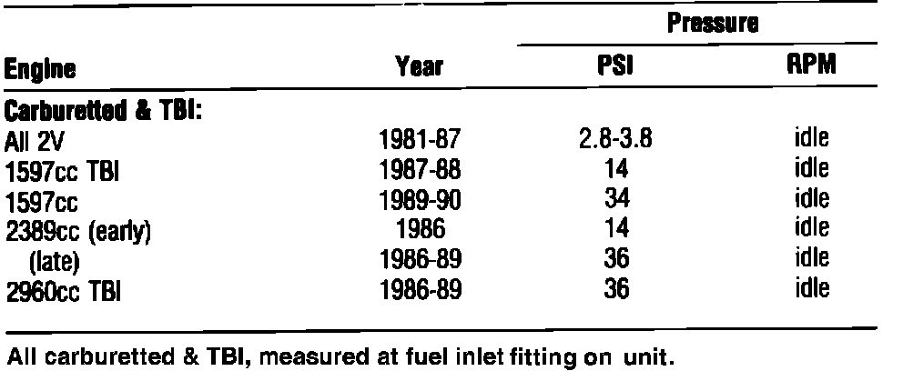 Fuel Pressure: Specifications