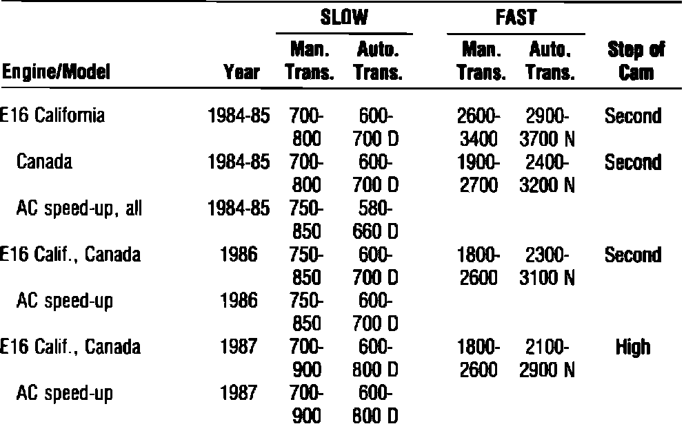 Fig. 11 Idle Speed W/O Computer Control Specifications: