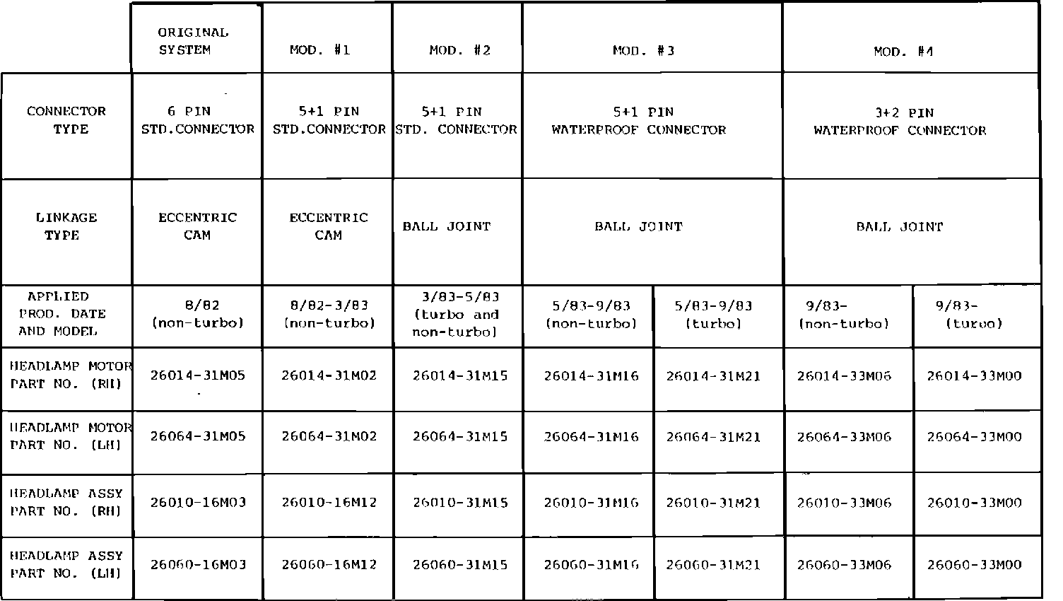 This bulletin highlights modifications made to the Pulsar NX retractable headlamp system since the start of production. Refer to this bulletin when servicing the headlamp motor connectors and linkages.