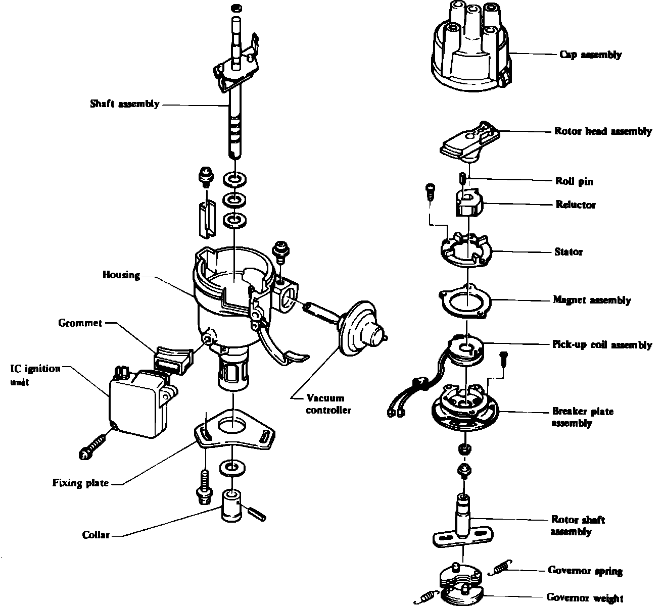 Fig. 12 Exploded view of IC type distributor with internal IC unit (typical):