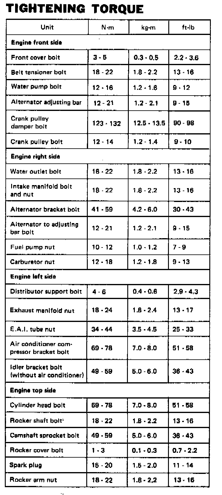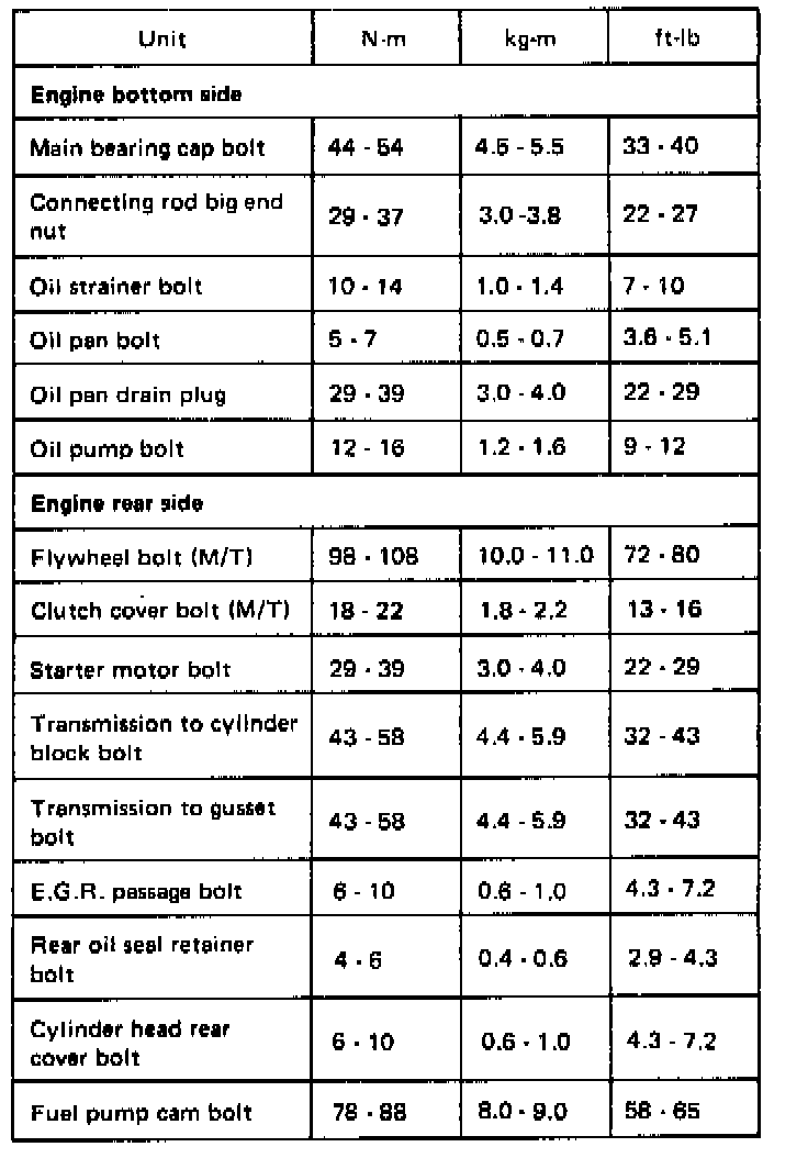 Torque Chart (Cont.):
