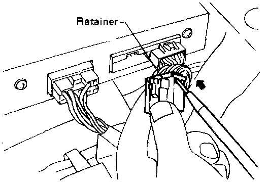2. When performing E.C.U. input/output signal inspection, remove pin terminal retainer from 20 and 16 pin connector to make it easier to insert tester probe into connector.
