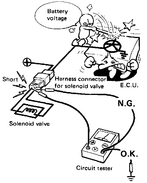 7. When measuring supply voltage of E.C.U. controlled components with a circuit tester, separate one tester probe from the other.