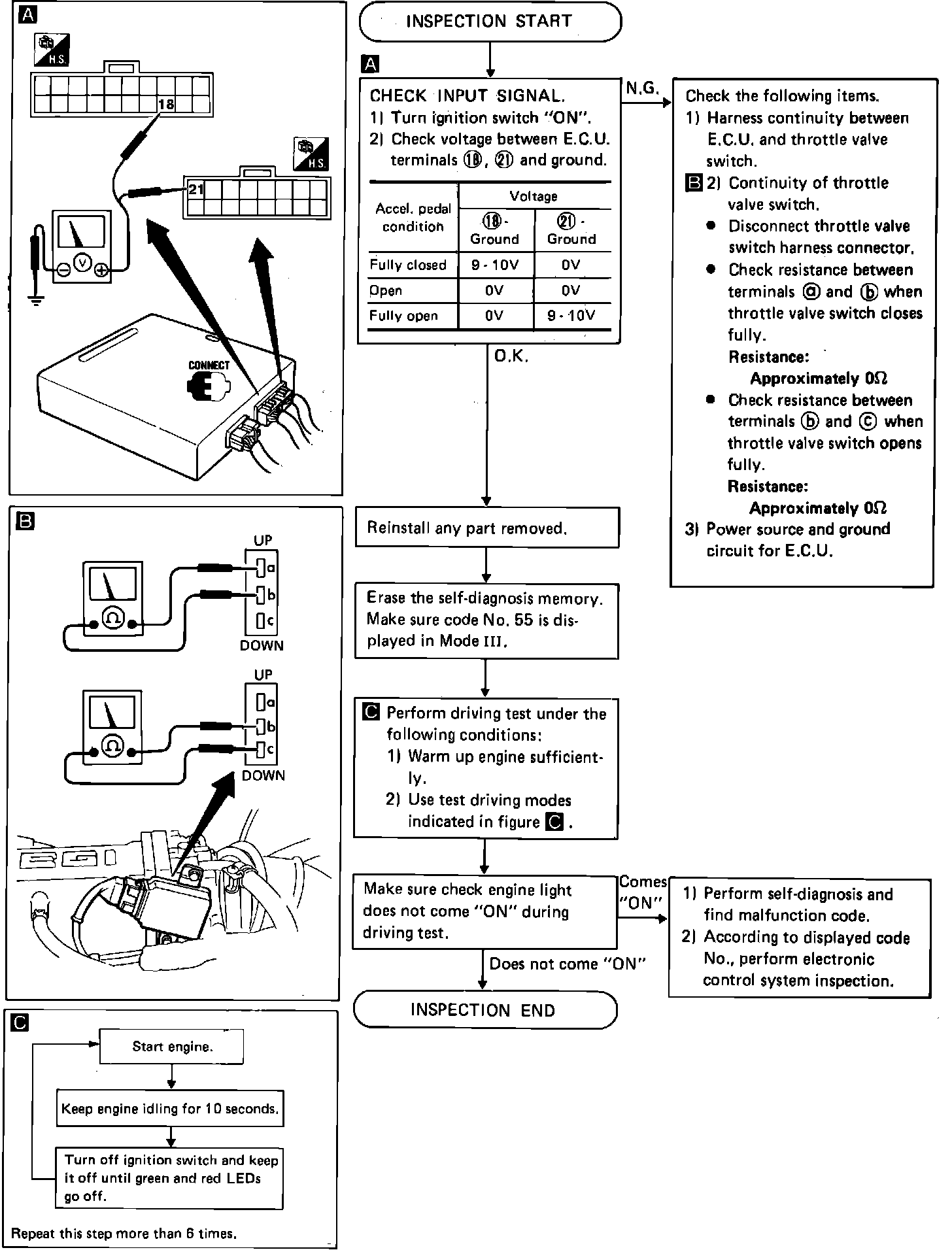 Fig. 283 Throttle valve switch ON/OFF diagnosis procedure.:
